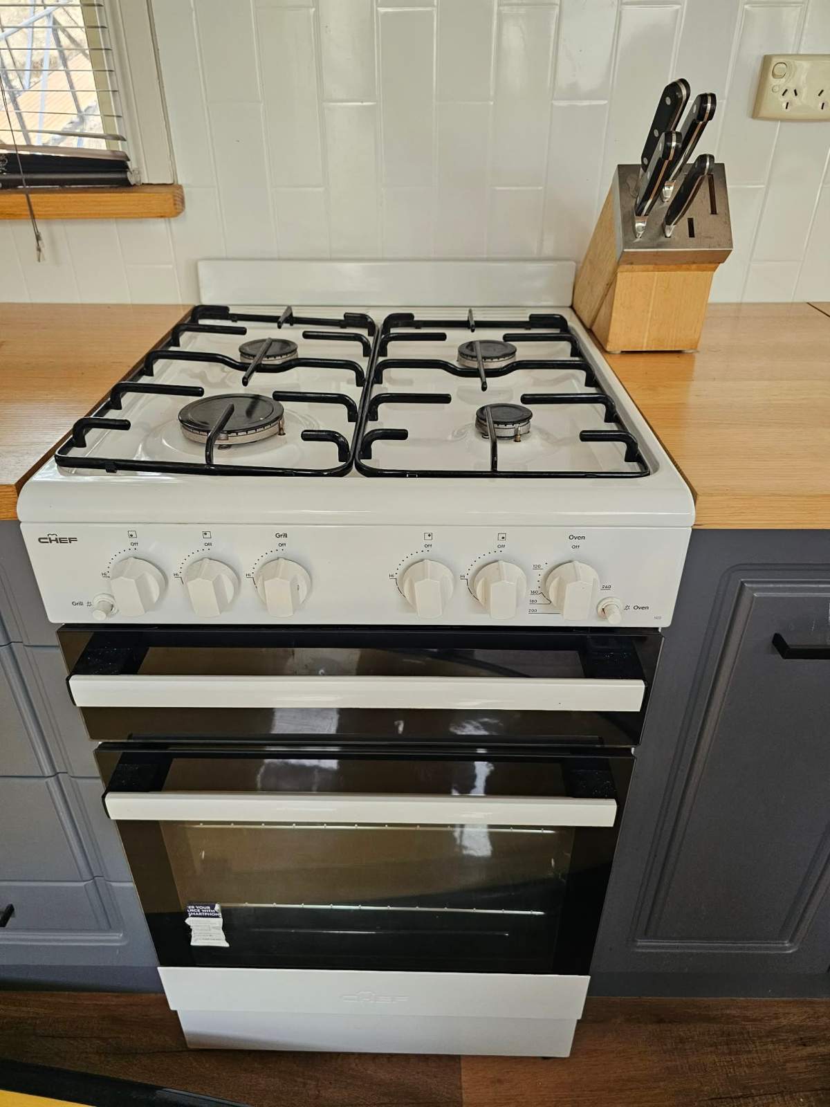 Stove: Yes, new full gas stove and oven (hardly used)